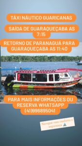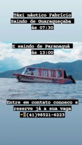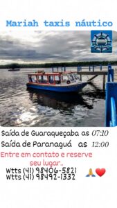 A partir das 11:30 Taxis Náuticos, saídas em frente ao Posto de Gasolina, tem que reservar.